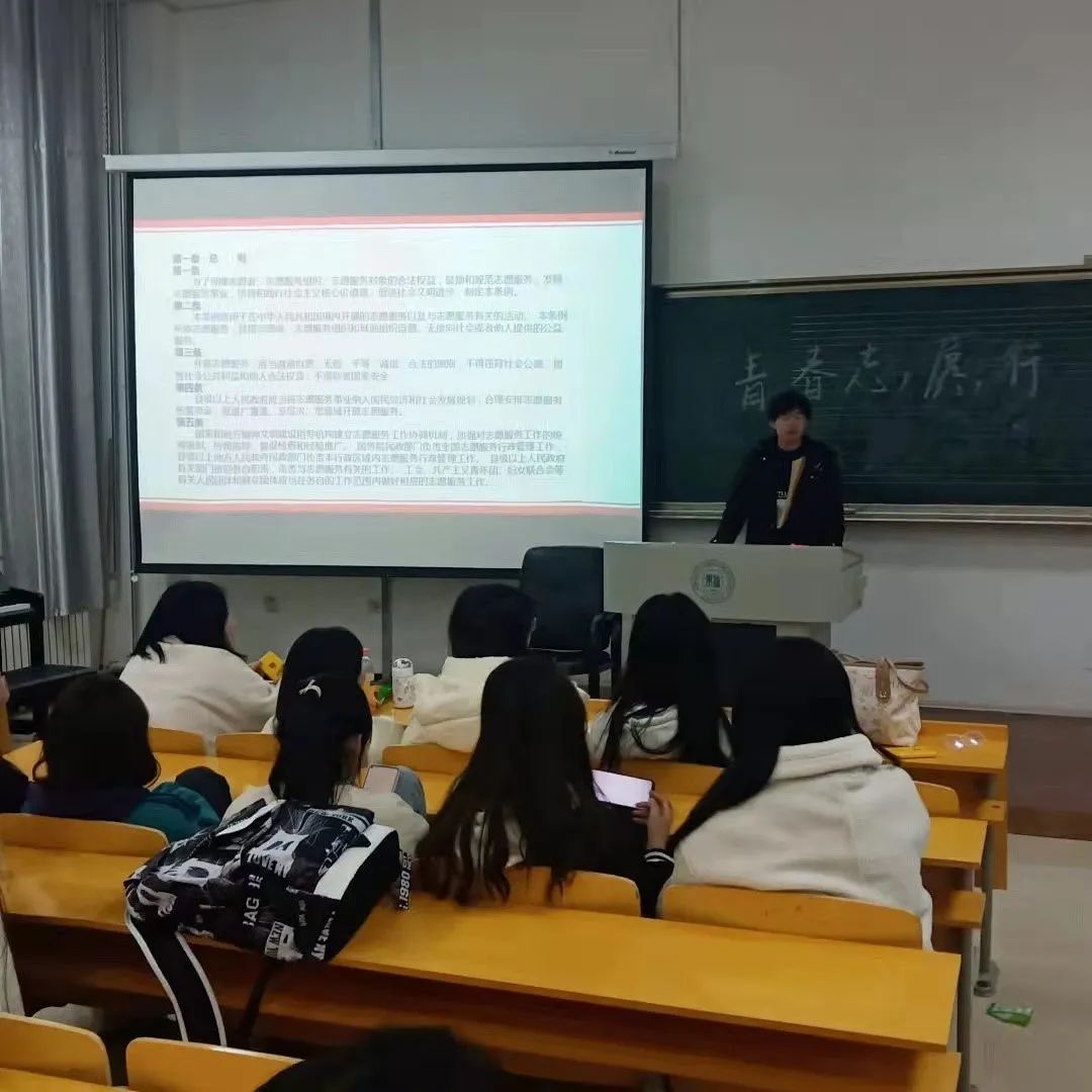 本次活动主要讲解志愿者注册流程和志愿服务的精神理念。同时注重志愿者的教育、培训、管理、维权等各项工作,并积极加强志愿者组织建设,引导学生积极投入多层次、多形式的志愿者服务活动当中。