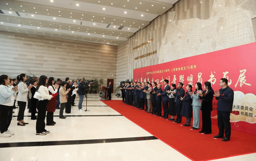2024年9月23日,为庆祝祖国华诞75周年,人民政协成立75周年,大庆民盟成立40周年,庆祝大庆民盟成立40周年暨民盟大庆书画院盟员书画展“在大庆城市规划馆隆重开幕。林庆华院长作为大庆高校唯一嘉宾代表应邀参加开幕式。美育发展研究中心李宝伟老师被聘为民盟大庆书画院首任院长,