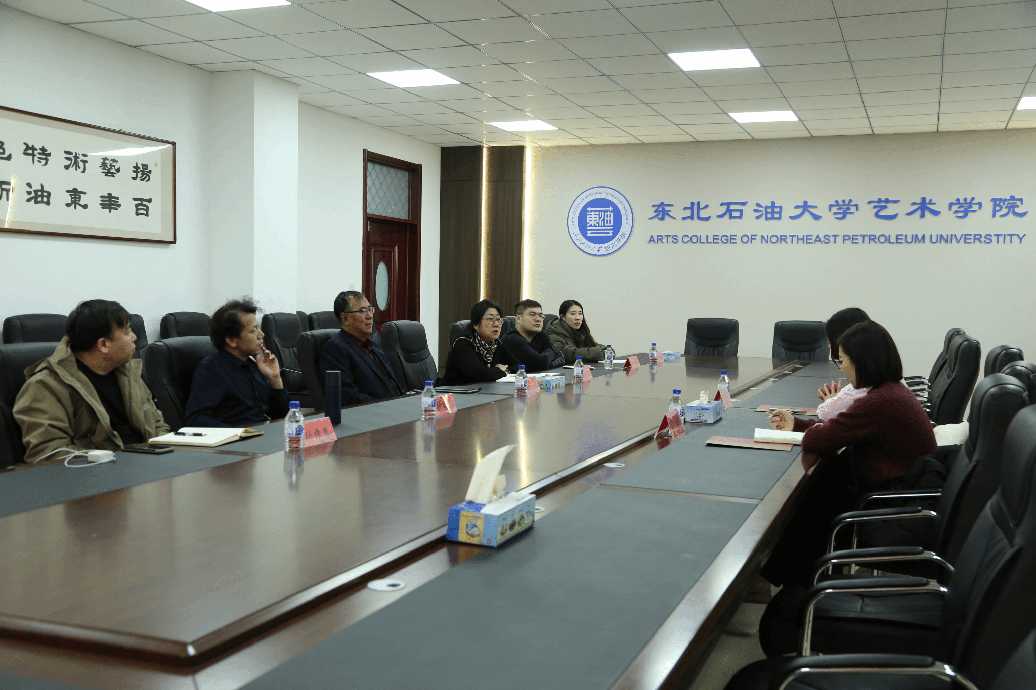beat365亚洲版官网党委书记张金辉、院长林庆华及美育发展研究中心主任、副主任、实训中心副主任等参加座谈,并针对beat365美育建设中的具体做法进行了深入的交流与探讨。
