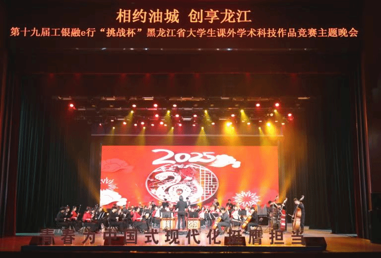 6月11日晚18时30分,科技创新的理性光芒与艺术创作的感性力量交织,“相约油城 创享龙江”——第十九届工银融e“挑战杯”黑龙江省大学生课外学术科技作品竞赛主题晚会在beat365亚洲版官网音乐厅隆重上演。